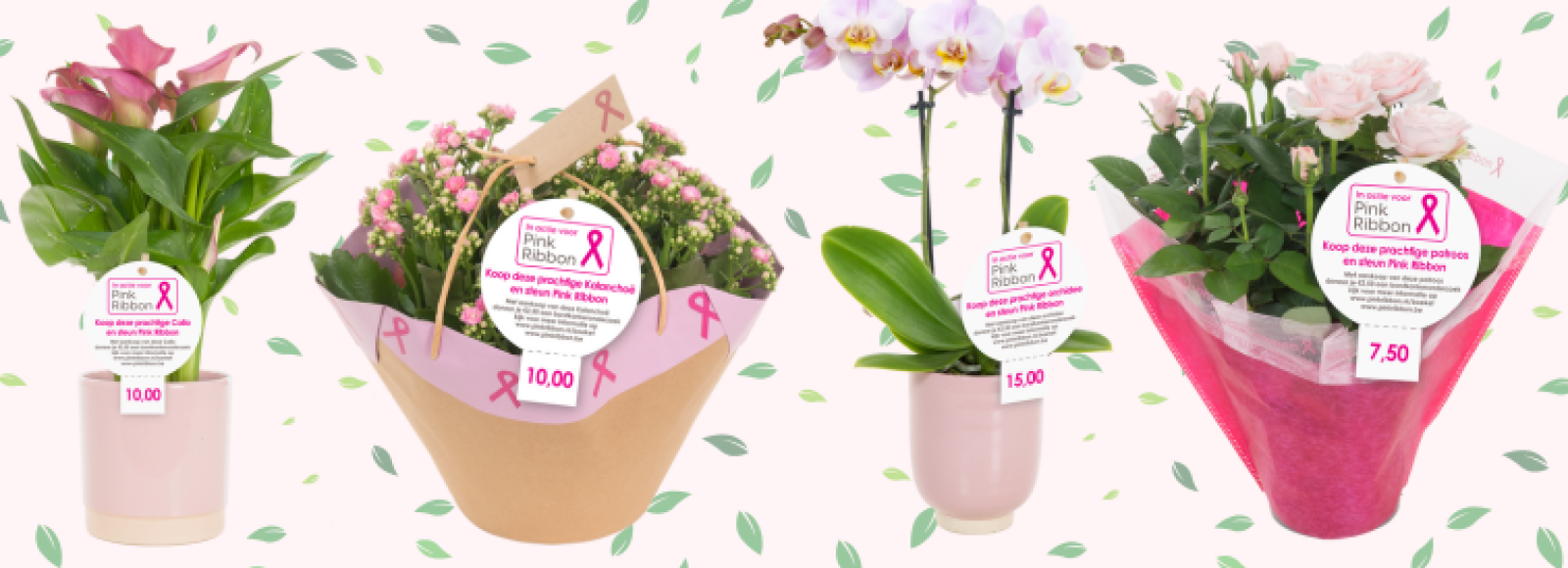 Albert Heijn ondersteunt Pink Ribbon al meer dan 10 jaar met een bloemen- en plantenactie tijdens de Borstkankermaand. Ook verkopen zij de Pink Ribbon Armband. Dit jaar is de bijdrage van Albert Heijn maar liefst € 504.250!